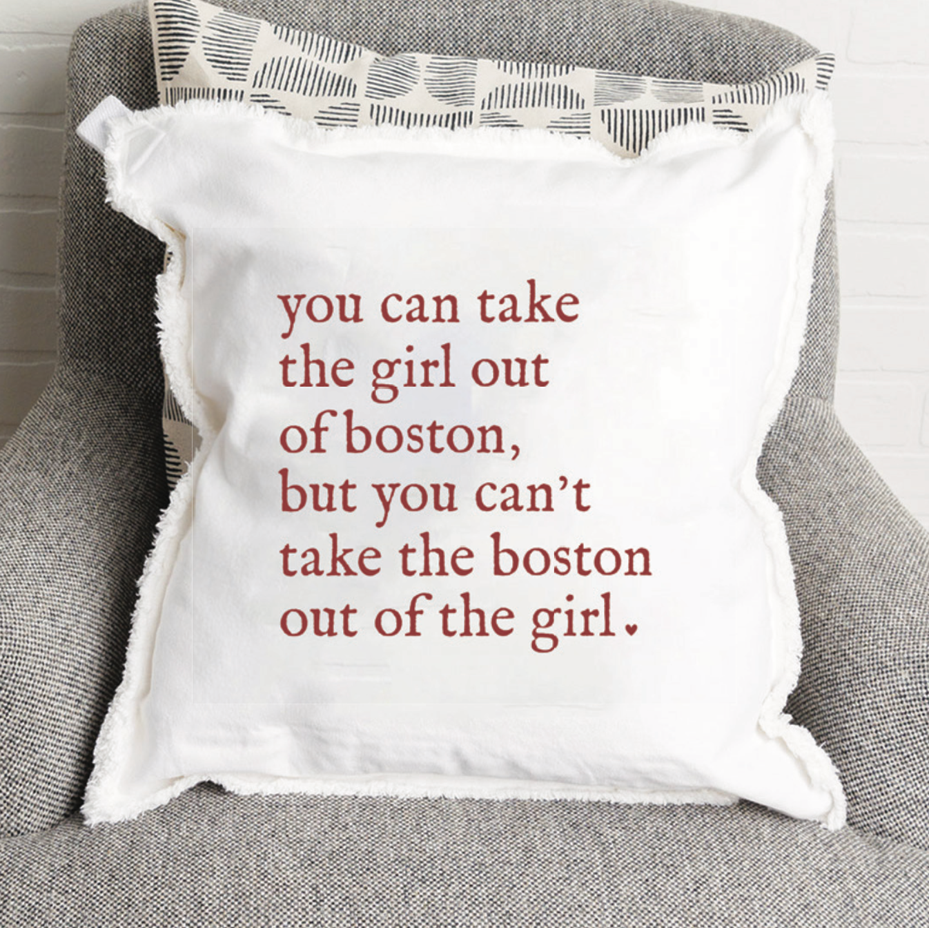 Featuring a playful phrase in bold lettering, this pillow is both stylish and meaningful. Its neutral color palette complements various decor styles, while the durable material ensures long-lasting use. Pair it with a Boston-themed twine sign or other city-inspired decor for a cohesive look. This pillow is a thoughtful gift for anyone who holds Boston close to their heart.