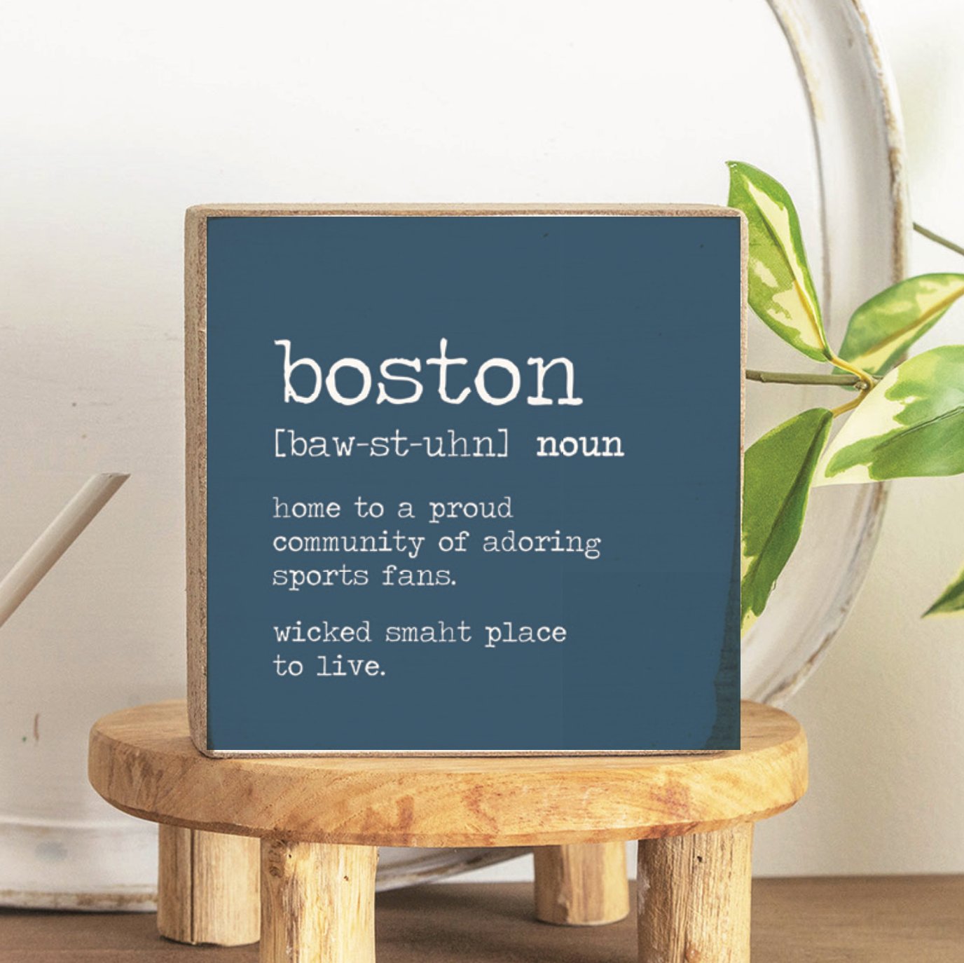 Celebrate your love for Boston with this charming twine sign, perfect for adding a touch of local pride to any room. This Square Block Sign is an ideal gift for sports enthusiasts and those who cherish the vibrant spirit of Boston. Its compact size makes it versatile for display on shelves, desks, or mantels, allowing you to showcase your connection to this iconic city effortlessly.