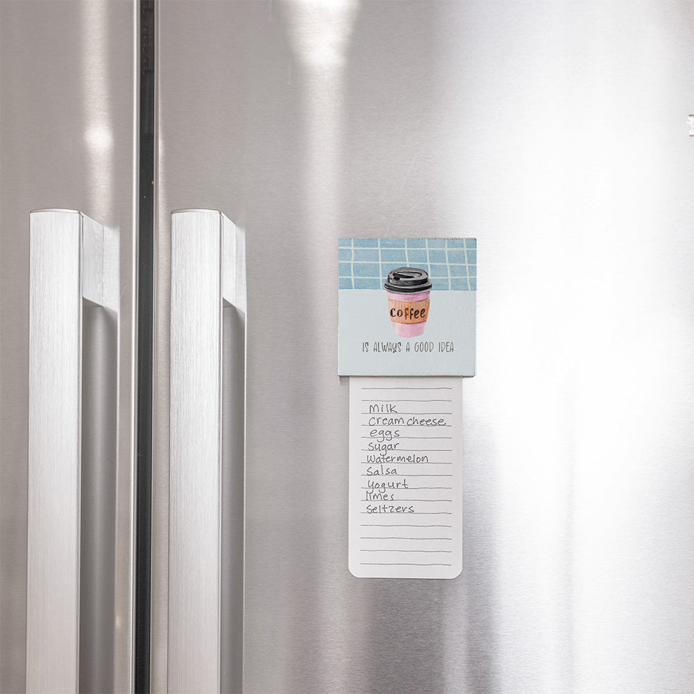 Elevate your kitchen or office space with this charming "Coffee Is Always A Good Idea" twine sign. Perfect for coffee lovers, this magnet adds a touch of warmth and personality to any setting. Its compact size makes it ideal for small spaces, while the playful design serves as a delightful reminder of your favorite brew. Whether you're starting your day or taking a midday break, this twine sign brings a cozy vibe to your environment.