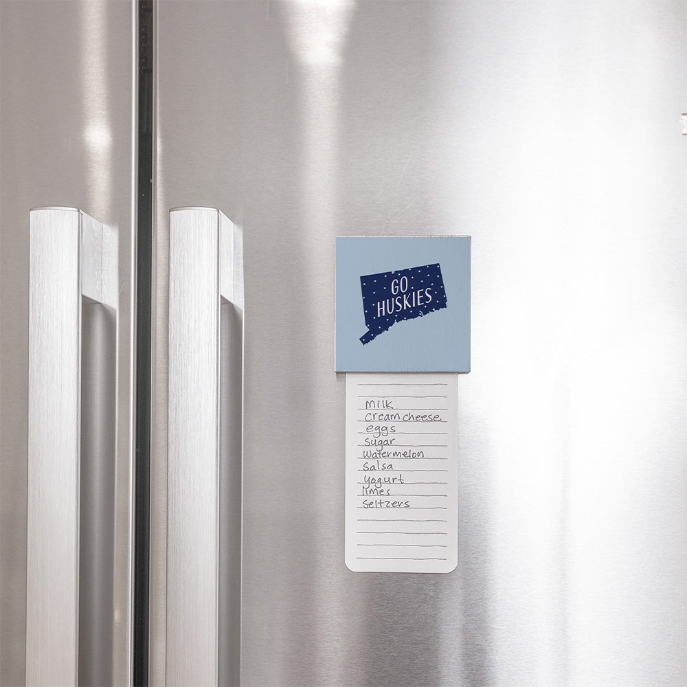 Crafted with attention to detail, the Go Huskies State Icon Magnet features a bold design of the Connecticut state outline, adorned with stars and the iconic "Go Huskies" slogan. Made from durable materials, this magnet ensures long-lasting use. Its vibrant colors and sleek finish make it a standout piece, perfect for gifting to fellow fans or keeping as a personal keepsake. Celebrate your team with this unique and stylish magnet.