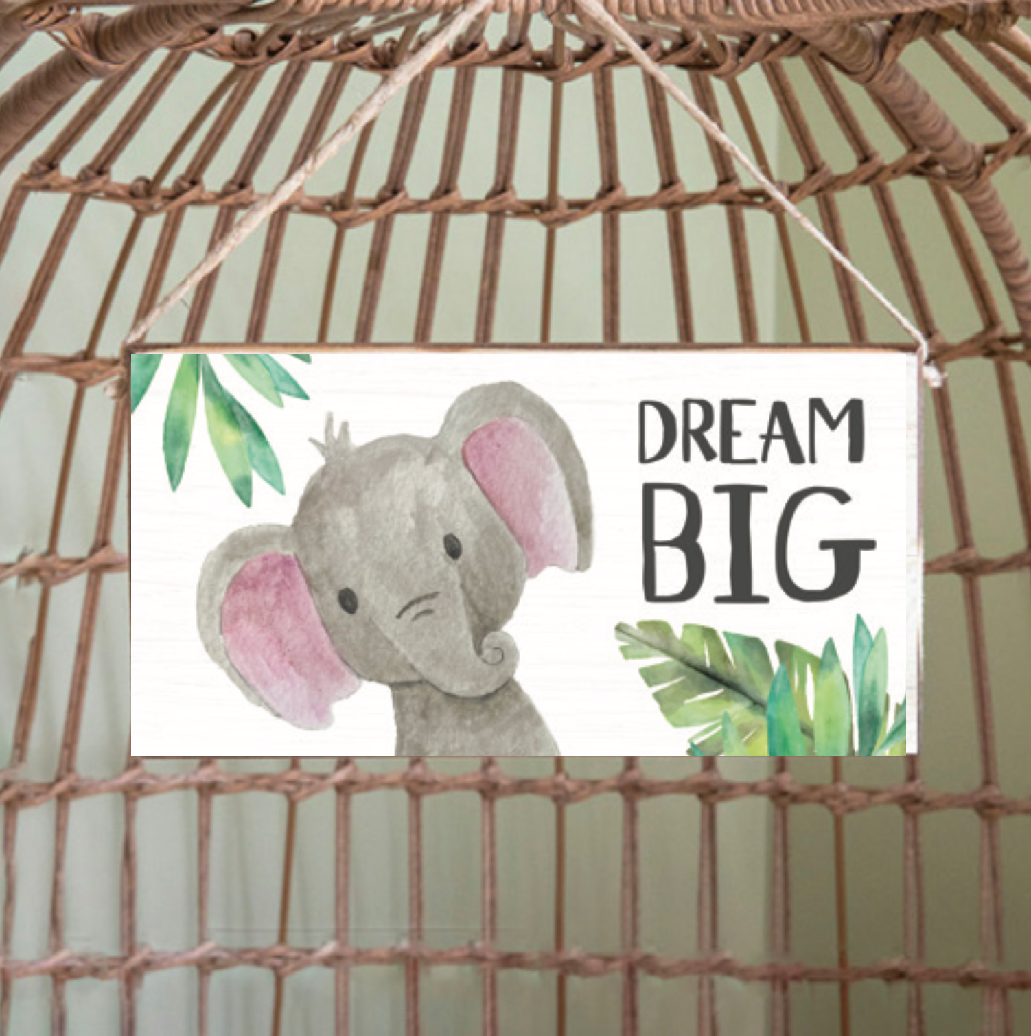 Inspire your little one's imagination with the Dream Big Twine Sign, a charming addition to any nursery or playroom. This delightful piece encourages creativity and positivity, making it a perfect gift for new parents or a thoughtful baby shower present. The gentle elephant design paired with lush greenery creates a soothing atmosphere, ideal for fostering a sense of wonder and adventure in your child's space.