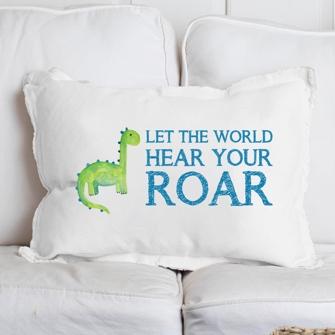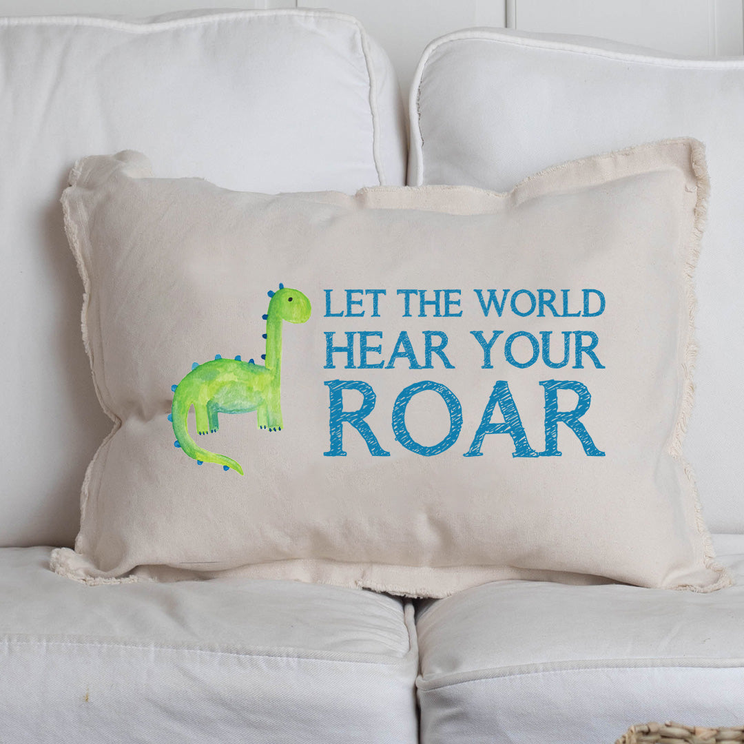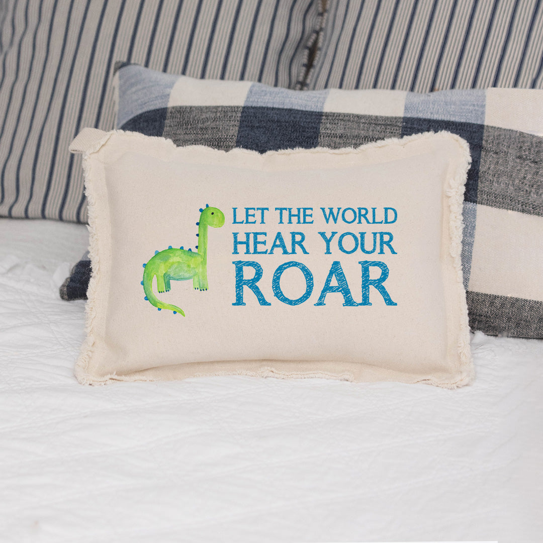 Add a playful touch to your child's room with the Hear Your Roar Lumbar Pillow. This charming pillow not only provides comfort but also inspires confidence with its encouraging message. Perfect for a nursery or playroom, it adds a cozy element to any space while sparking imagination. The soft fabric ensures a gentle feel, making it ideal for snuggling during storytime or naptime.