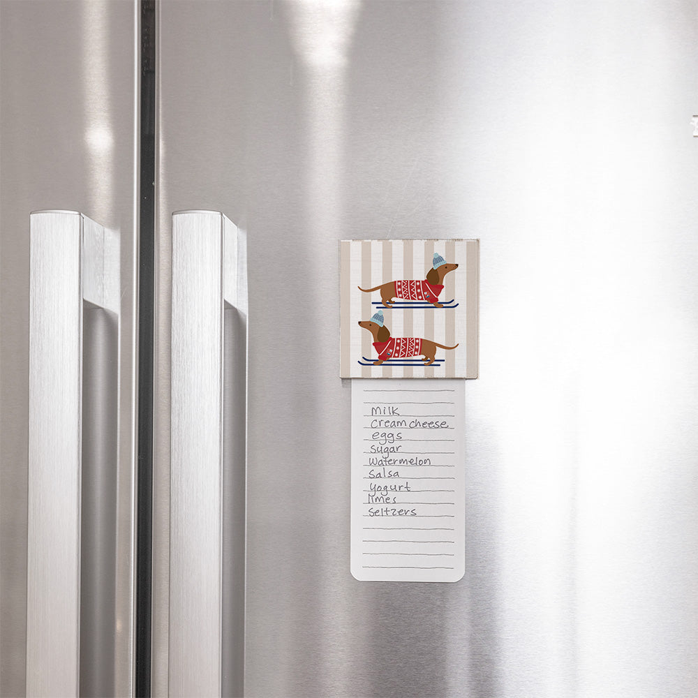 Crafted with attention to detail, this twine sign features a cute dachshund in a festive sweater and hat, gliding on skis. The vibrant colors and playful design make it a standout piece. Made from durable materials, this magnet is designed to last, ensuring it remains a favorite part of your seasonal decor. Ideal for gifting, it’s a unique addition to any dog lover's collection.