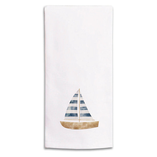 Watercolor Sailboat Rustic Marlin Tea Towel