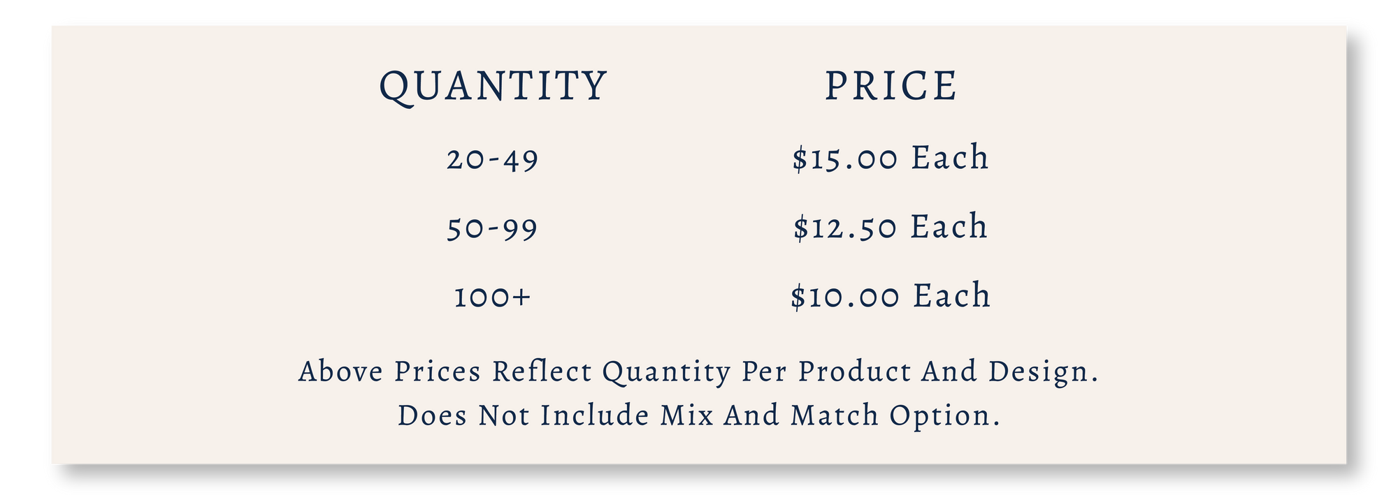 Rustic Marlin produces your product, and you/your organization are responsible for pricing and selling the item to raise funds. At this time, we do not offer