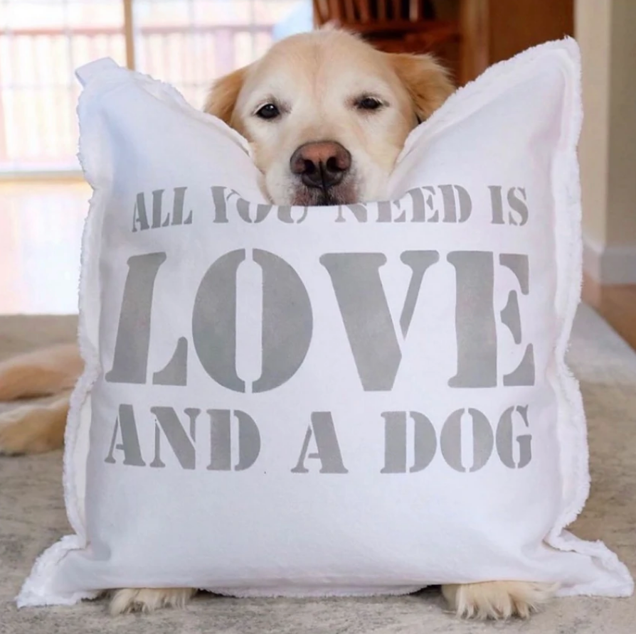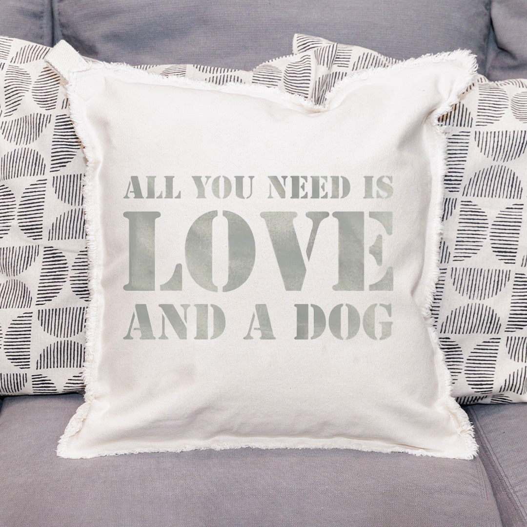 Add a touch of warmth and charm to your living space with this delightful "All You Need Is Love + A Dog" square pillow. Perfect for dog lovers, this cozy accent piece effortlessly enhances your home decor while celebrating the joy and companionship of your furry friend. Its soft, plush fabric ensures comfort, making it an ideal addition to your sofa or bed for those relaxing moments.