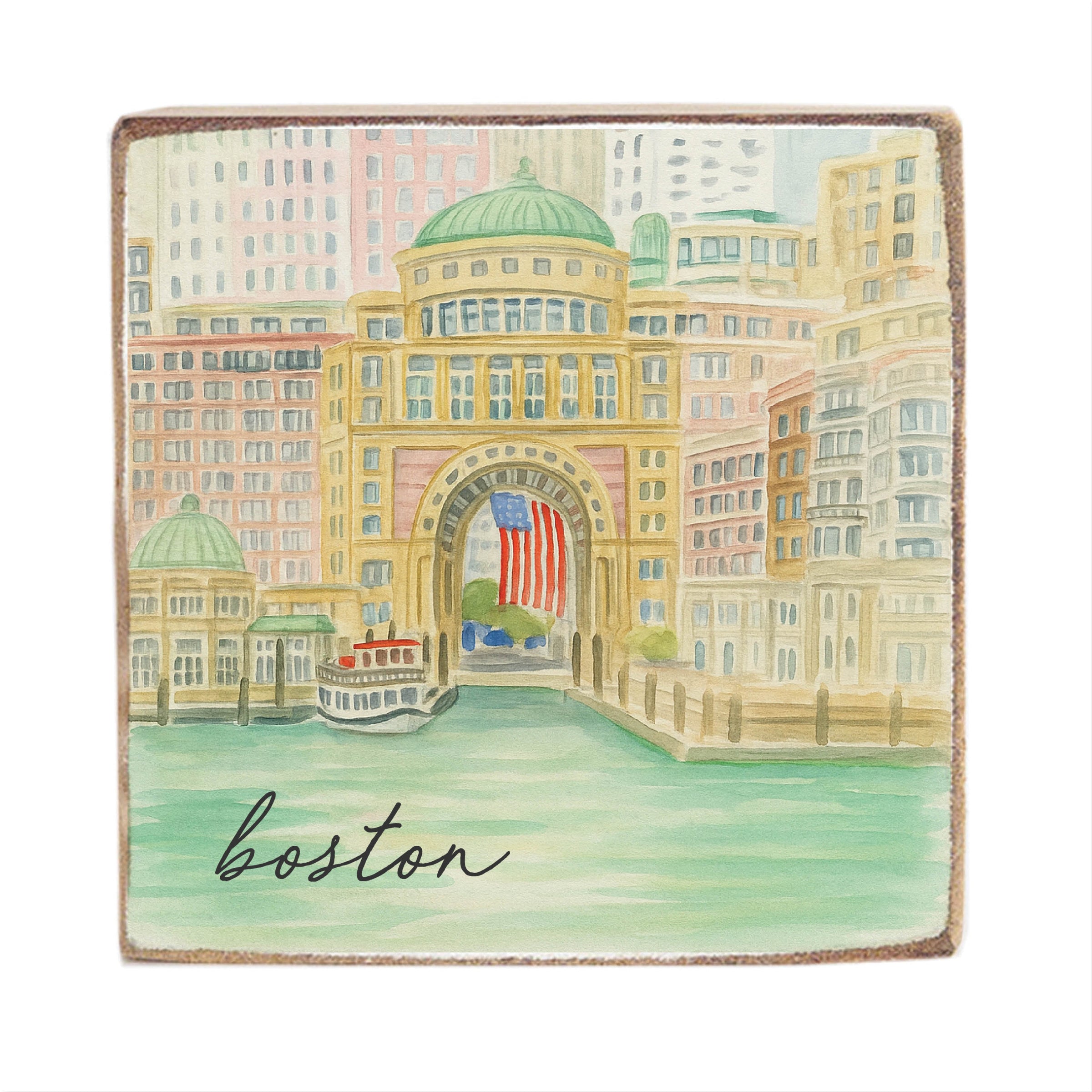 Crafted from high-quality wood, this twine sign features a beautifully detailed illustration of Boston's waterfront. The soft, muted colors and intricate design make it a versatile piece that complements various decor styles. Easy to hang, this Square Block Sign is lightweight yet durable, ensuring it remains a staple in your decor for years to come. Whether you're a Boston native or a fan of its rich history, this piece is a delightful way to celebrate the city's unique character.