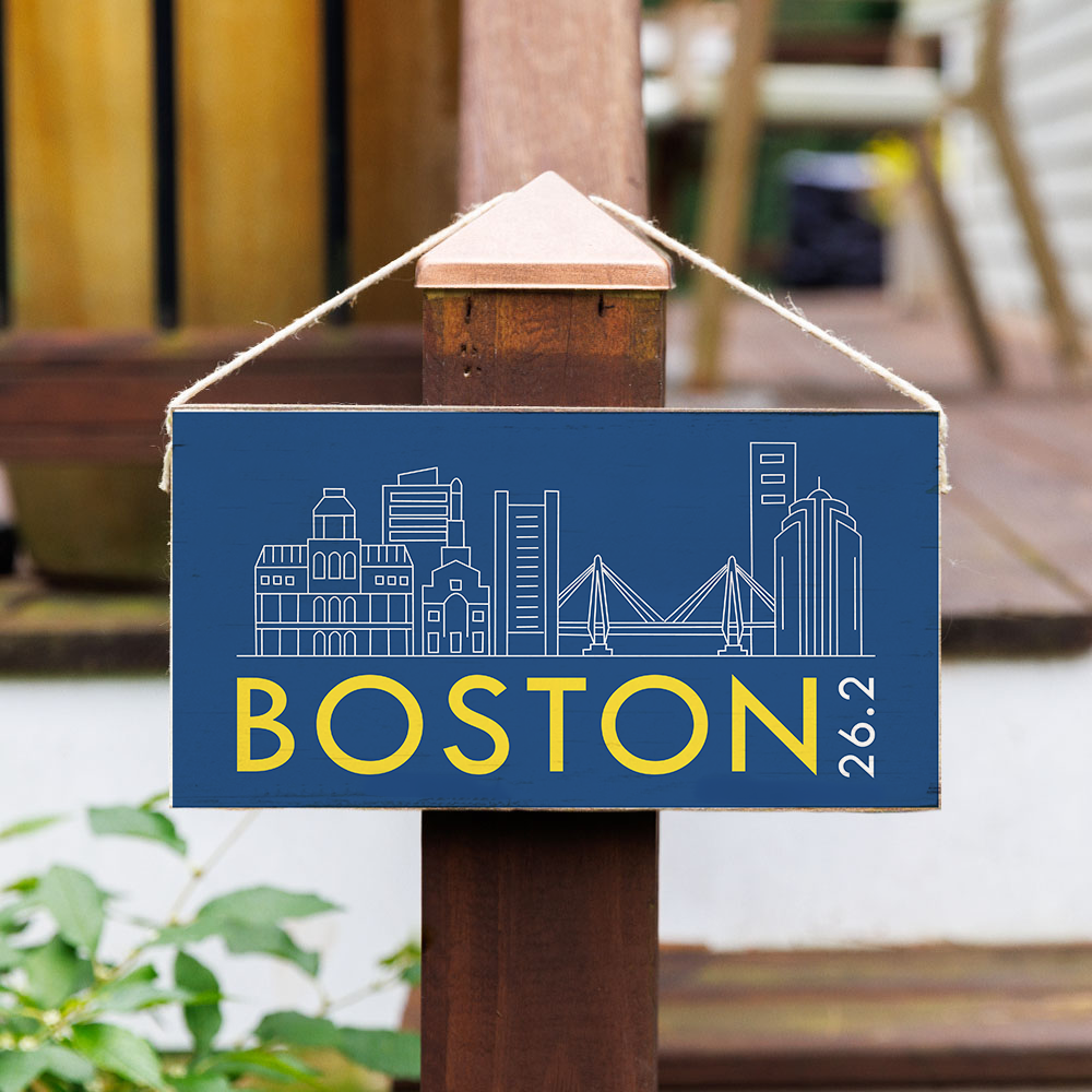 Crafted with attention to detail, this twine sign features a sleek design of Boston's skyline, highlighted by the symbolic 26.2 marathon distance. The durable materials ensure long-lasting quality, while the vibrant colors bring a lively touch to your decor. Whether you're commemorating a personal achievement or simply celebrating your love for Boston, this skyline twine sign is a meaningful addition to your collection. Perfect for living rooms, offices, or entryways, it’s a versatile piece that speaks to the heart of Boston.