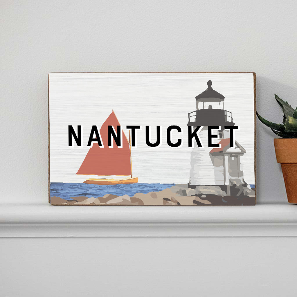 Exclusive Four Winds Cat Boats Decorative Wooden Block